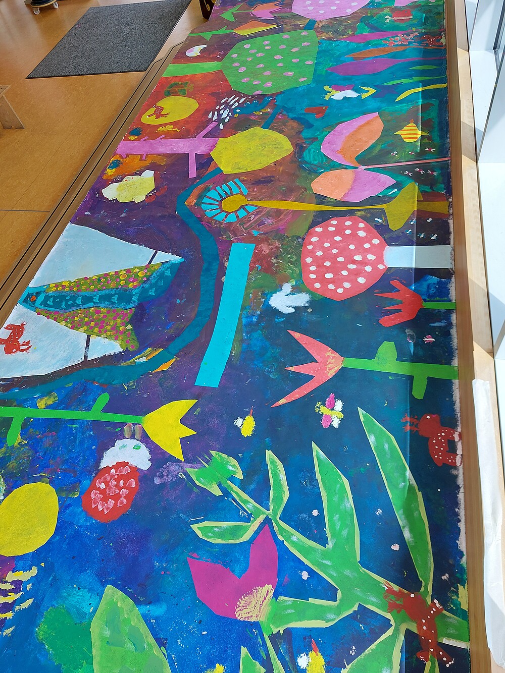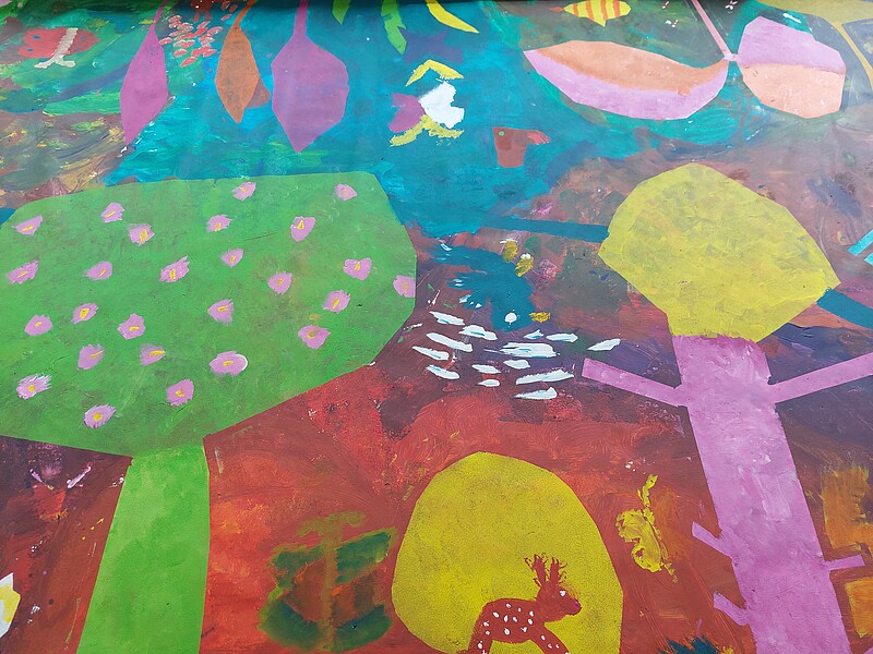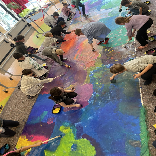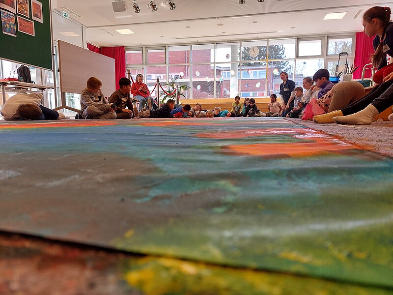 Gemeinsam mit den Künstlerinnen des Kulturforums 21 Sabine Flunker und Claudia Mächler gestalteten jeweils die 3a und 3b an zwei Schulvormittagen eine 10 Meter lange Leinwand zum Thema "Paradiesgarten". Mithilfe von Teamarbeit, Fantasie, Kreativität, Schwämmen, Pinseln, Farben und Klebeband entstanden zwei tolle Kunstwerke.  Abstrakte Formen verleihen jeder Leinwand seine Einzigartigkeit. Es lohnt sich das Kunstwerk mehrmals und aus verschiedenen Perspektiven zu betrachten, um die darin steckende künstlerische Vielfalt zu entdecken. (Text 3a) Diese Veranstaltung wurde über das Kulturforum21, das kulturelle Bildungsprogramm der Schulen im Erzbistum Hamburg organisiert und fand großen Zuspruch.