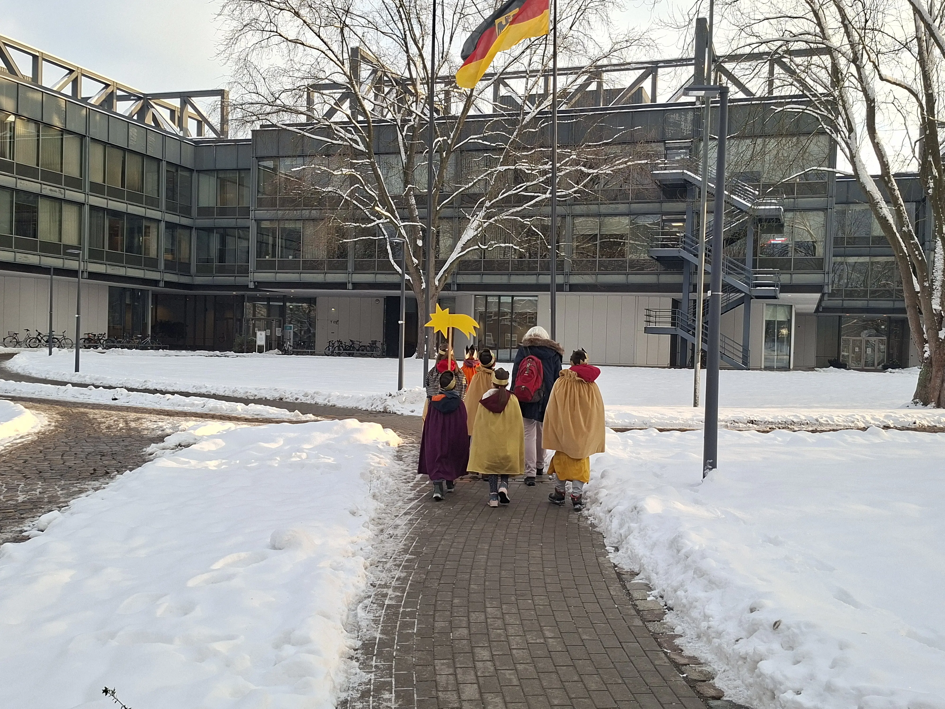 Von unserer St. Joseph Schule nahm eine Abordnung von Schülerinnen und Schülern teil, die auch in diesem Jahr wieder durch unser engagiertes Schulpastoralmitglied Frau Bergmann vorbereitet und begleitet wurde. Einen Tag später ging es dann in die Bundeswehruniversität Hamburg. Auch hier begleitete wieder Frau Bergmann die St. Joseph Kinder. Seit Jahren besteht mit der Militärseelsorge der Helmut Schmidt Universität diese wunderbare Kooperation in sachen Sternsinger. (siehe Fotos 3 & 4 - unten)