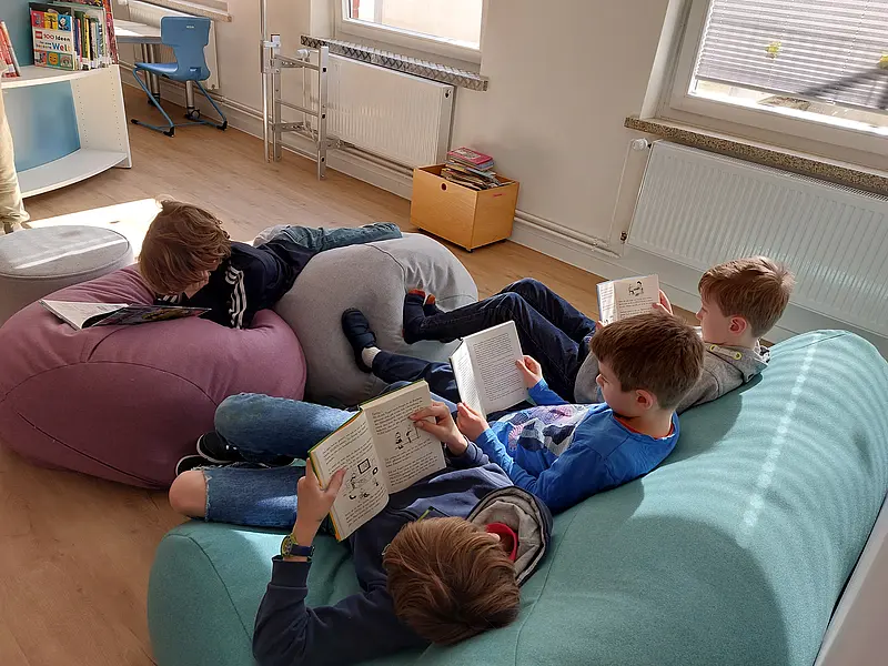 Seit Februar haben unsere Schülerinnen und Schüler zu unterschiedlichen Zeiten die Möglichkeit eine “Stille Pause” oder eine “Lesepause” auszuprobieren, um die Pause mal ganz anders zu erleben. Die Lesepause wird in der Bibliothek angeboten. Bis zzu 3 Kinder einer Klasse haben die Möglichkeit daran teilzunehmen. Genauso ist das auch an einem anderen Tag bei der stillen Pause in unserem neu gestalteten “Wolkenraum” (ehemals Multiraum).